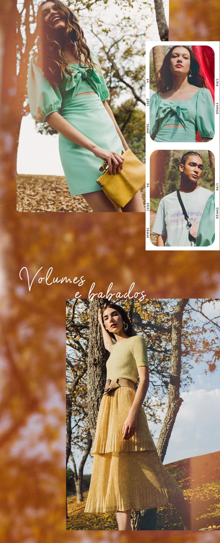 A coleção Primavera-Verão renova o estilo romântico vindo direto dos anos 1980, com amarrações nas blusas, mangas volumosas, saias com camadas e babados. Com esses detalhes, as peças ganham status de protagonistas em qualquer look ou momento do dia.