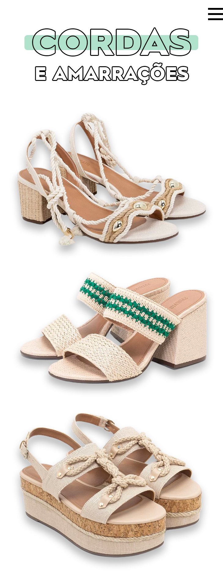 Já as sandálias com cordas, fivelas e amarrações são o statement da temporada, além de super estilosas e trendy.