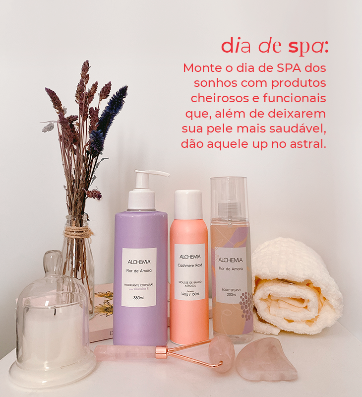 deixarem sua pele mais saudável, vão deixar você e seu ambiente cheiroso, dando aqueleup no astral. O mousse de banho de Cashmere deixa a pele sedosa e macia, pronta parareceber o hidratante. Para finalizar, abuse do body splash em todo o corpo. Já para a área dos olhos, invista em uma super massagem com face roller e pedra de quartzo rosa, ótimo para acalmar e desinchar a pele.