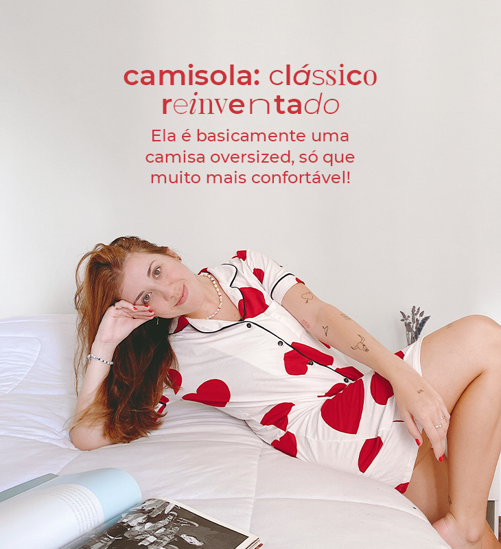 A camisola é o one-piece de pijama ideal para os dias mais quentes. Estilosa, confortável esuper fresquinha, ela dá um passo à frente na sofisticação, sendo uma releitura oversizedda clássica camisa, com golas e botões.