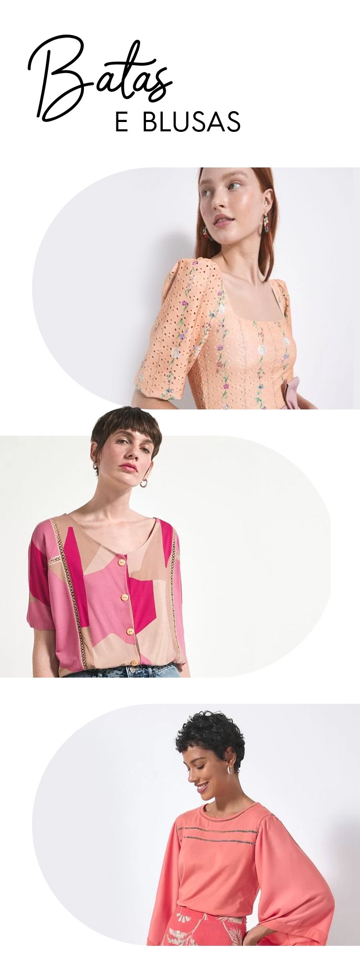 A bata é um estilo de blusa, e também uma das peças mais marcantes do bohemian garden. Suas mangas amplas e detalhes de rendas e amarrações, fazem parte do visual hippie e boho chic que inspiram o estilo. Por isso, a bata carrega muita personalidade e atribui um mood despojado e charmoso à produção.