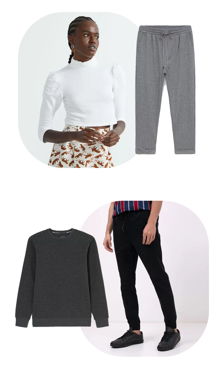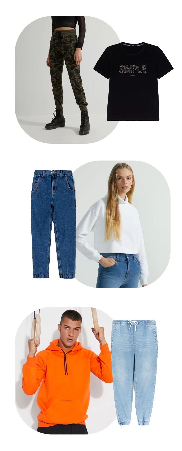 Misturar uma peça de moletom com outra de tecido bem diferente é uma ótima alternativa na hora de montar um look contrastante e muito urbano. Para um look high-low perfeito, combine o moletom com peças mais arrumadinhas – como a blusa texturizada com gola alta e manga franzida, que combina perfeitamente com a calça risca de giz em moletom. Para os homens, o blusão básico de moletom com calça jogger em sarja não tem erro.