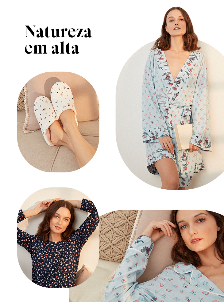 Você gosta de estar em conexão com a natureza? Na hora de dormir, manter essa ligação pode fazer você se sentir ainda melhor! As flores são trend na estamparia e vieram para florescer e trazer tranquilidade para o momento de descanso. Nossa dica para se manter quentinha da cabeça aos pés é combinar o pijama com pantufinhas estampadas.