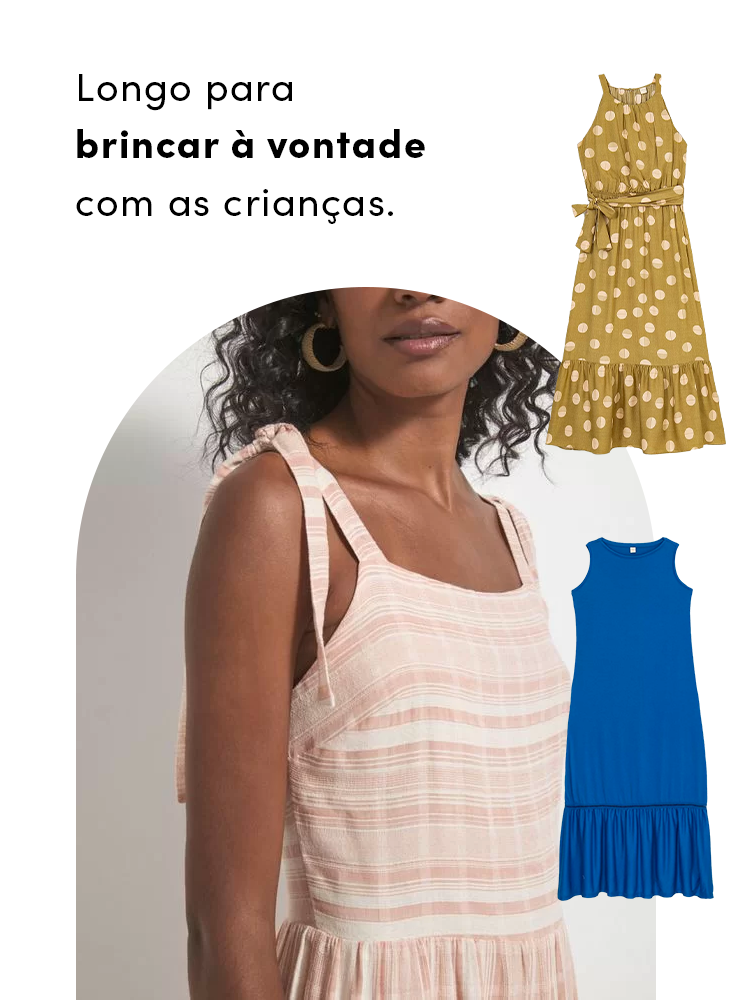 para que não haja problemas de se movimentar, ficar puxando o vestido e tal. A roupa precisa facilitar também, certo? E os longos são desses, super comfy.