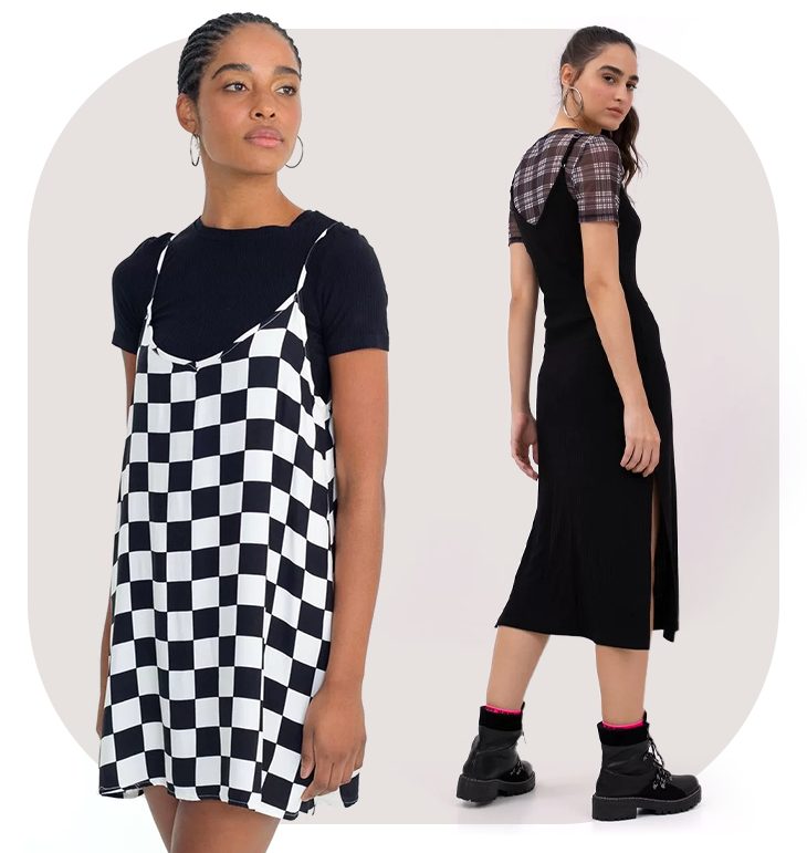O vestido de alcinha tipo camisola é um clássico dessa época, geralmente feito de seda. Aqui, versões em outros tecidos.