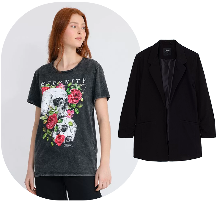 Essa combinação podia ser vista aos montes em séries famosas da época, tanto com camiseta lisa quanto estampada, como as abaixo.