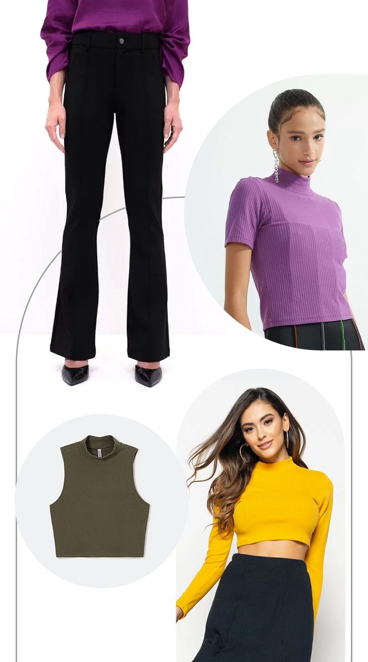 Uma dessas combinações de tipo “deu a louca no túnel do tempo” é a da calça bailarina noventista com a estampa quadriculada estilo pied-de-poule, um hit dos tailleurs dos anos 60, agora revisitada em camisetas cropped, coletes e até jaquetas tipo corta-vento.