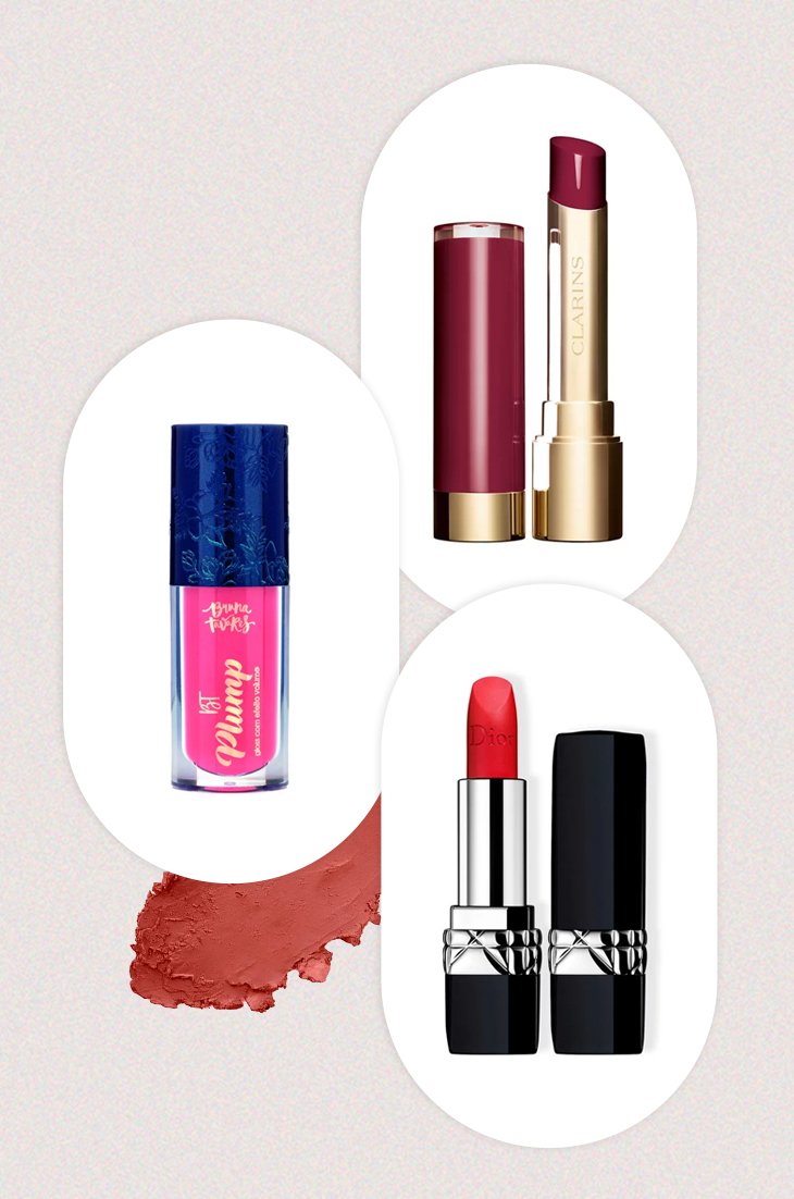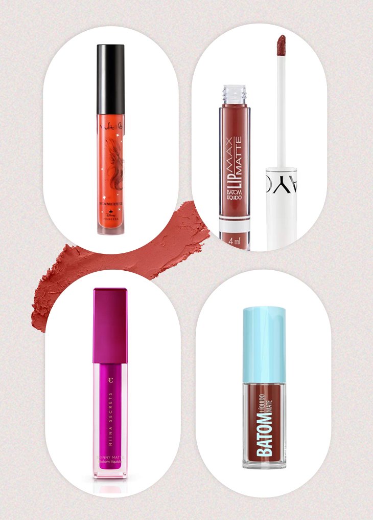 Já os batons de efeito matte são mais confortáveis e menos secos, como o Multiefeitos, da Vult, o Lip Max Matte, da Payot e o Skinny Matte, da Niina Secrets. Todos são em versão líquida com aplicador, o que facilita o desenho dos lábios.