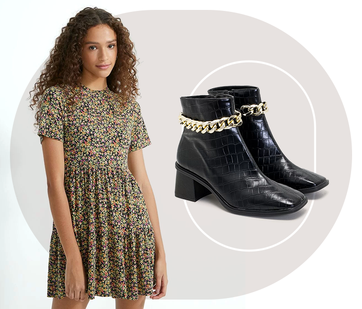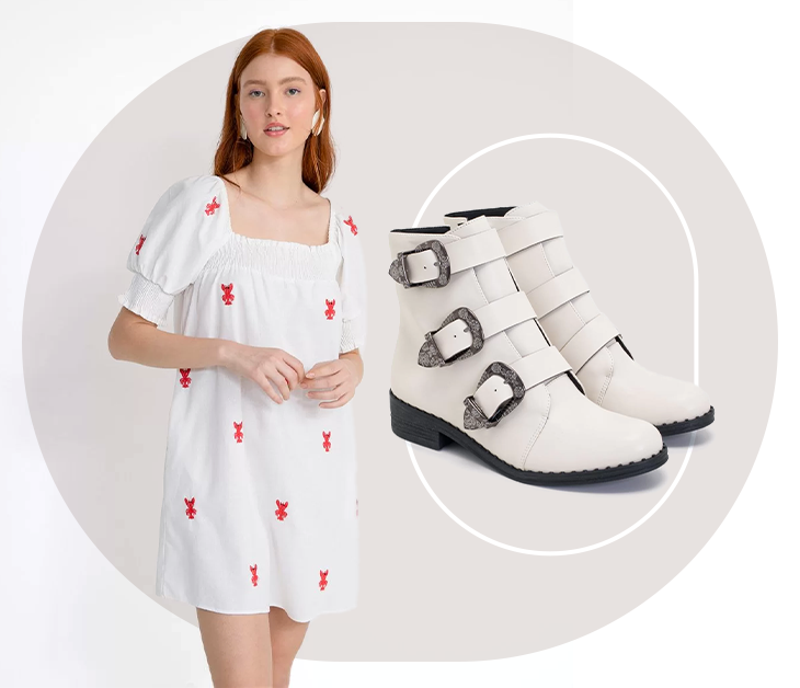 Meia calça é item essencial quando a temperatura cai. A peça deixa o visual charmoso e permite usar seus vestidos preferidos sem sentir frio! Para finalizar, nossa dica é apostar em uma bota no mesmo tom da meia.
