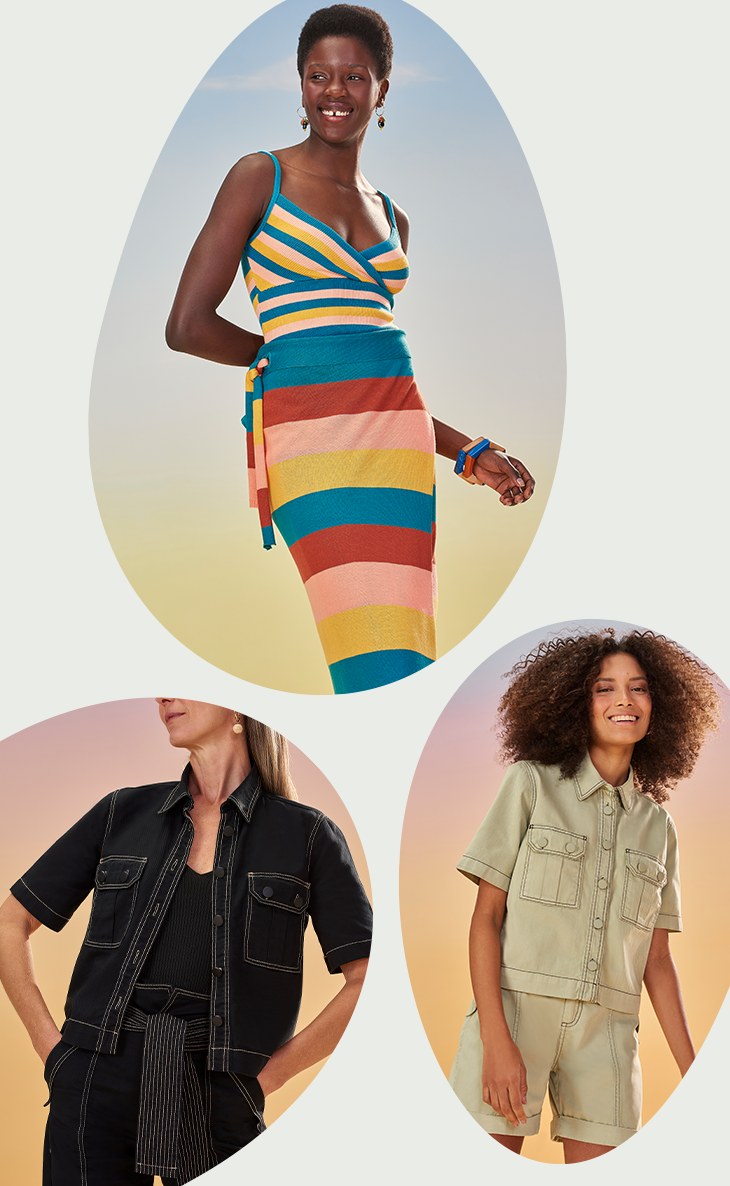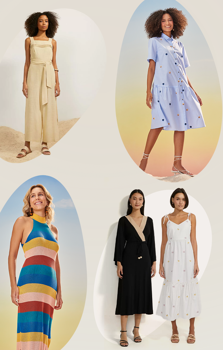 Os vestidos, chemises e os macacões da nossa linha são tão vibrantes quanto delicados e graciosos. É assim: vestiu, está pronta!