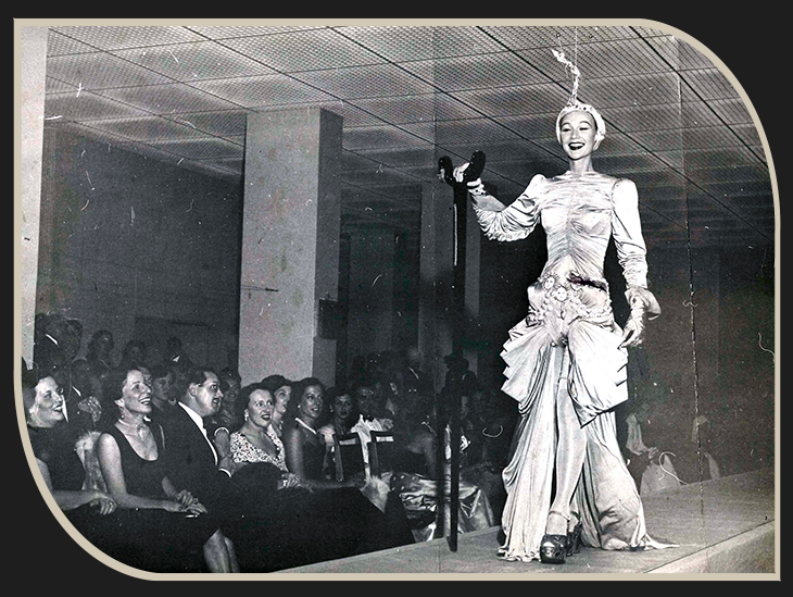 Sophie, modelo parisiense, exibe, no desfile do Museu de Arte, o traje do futuro, criado por Salvador Dali. 28.03.1951.