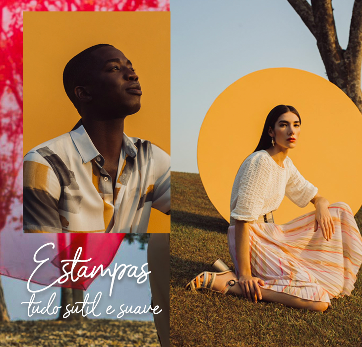 Para variar dos lisos ou fazer composições deliciosas, as estampas da temporada são suaves. Os florais típicos da estação marcam presença, assim como traços artísticos que lembram pinceladas. Até peças listradas apostam no baixo contraste.