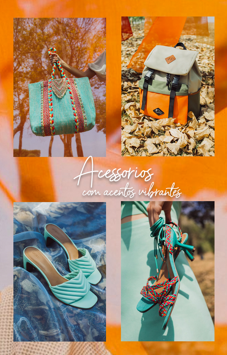 Nos acessórios, valorize as texturas – como palhas, tricôs e treliças. Lembrando que bolsas e sapatos podem ser o detalhe colorido que faltava para a sua produção ter mais vitalidade.
