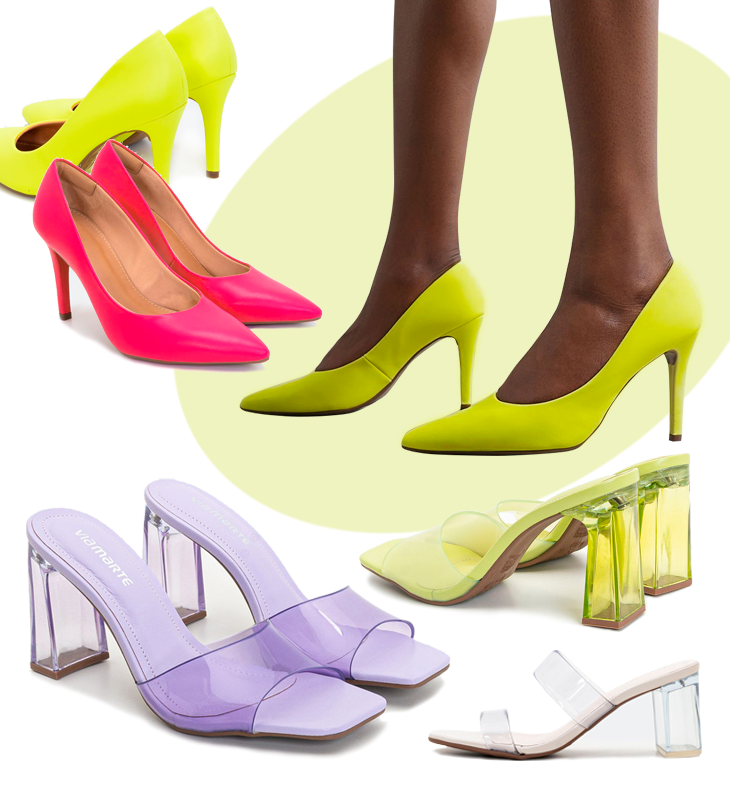 Inspirado pela moda dopamina, os scarpins coloridos vão trazer um toque de cor e alegria aos seus pés. Na balada ou no trabalho, eles não passam despercebidos e deixam o visual muito mais fashion. No office look, combine com peças de modelagens mais estruturadas e em tons neutros, como o branco ou o preto. Na balada, o look all white com o scarpin colorido não vai ter erro!
