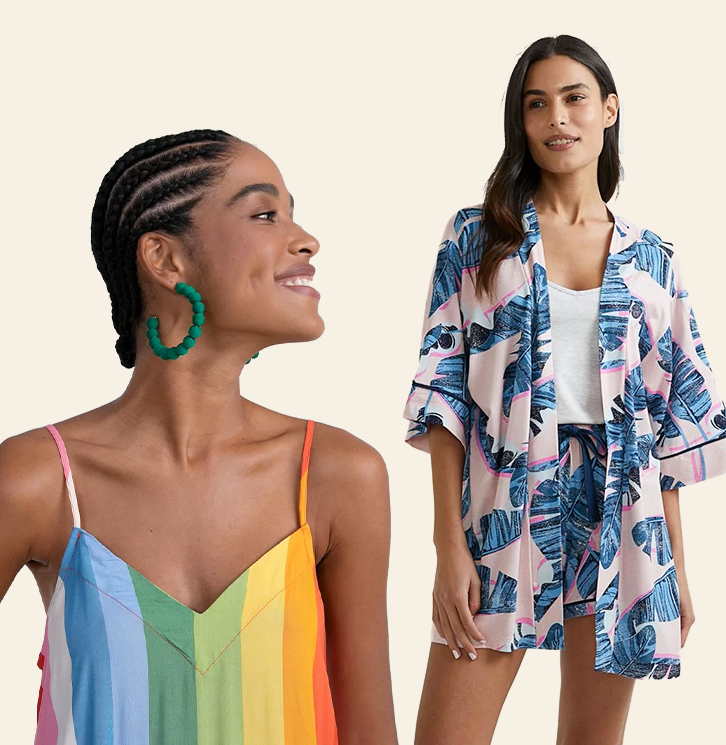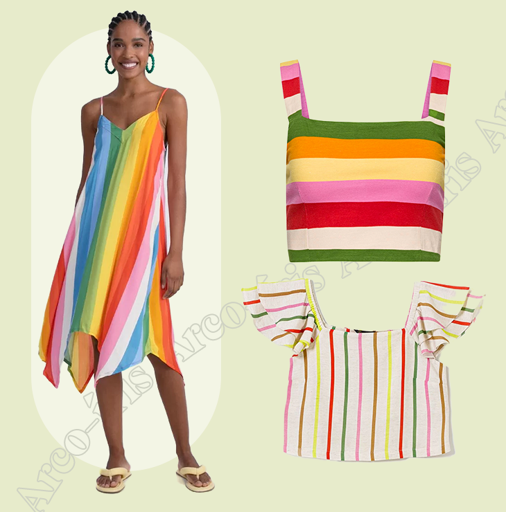 Falando em cores, 2022 tem tudo pra ser um ano bem colorido! As cores trazem esse sentimento de alegria que a gente tanto precisa nesse momento, né? Por isso, as estampas de arco-íris (ou multicolorida) estarão super em alta nesse momento. Com elas, os looks ficam super divertidos, cheios de personalidade e presença. Você pode usar junto com uma peça mais neutra.
