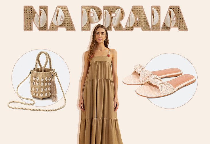 Para usar o breezy dress no mood praiano, combine o vestido com acessórios naturais. Quem nunca juntou uma conchinha na beira de praia ou apostou na tradicional bolsa de palha para carregar o que precisa? Nessa combinação, os dois elementos aparecem com um toque fashion, mas sem perder sua essência artesanal.