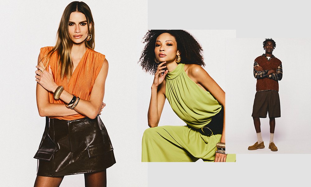 Ao mesmo tempo, o estilo vintage se conecta a propostas mais fluidas e artesanais. Peças em renda, saias longas, miçangas e cintos com fivelas marcantes trazem referências do estilo boho e do visual hippie, muito presente nos anos 70.