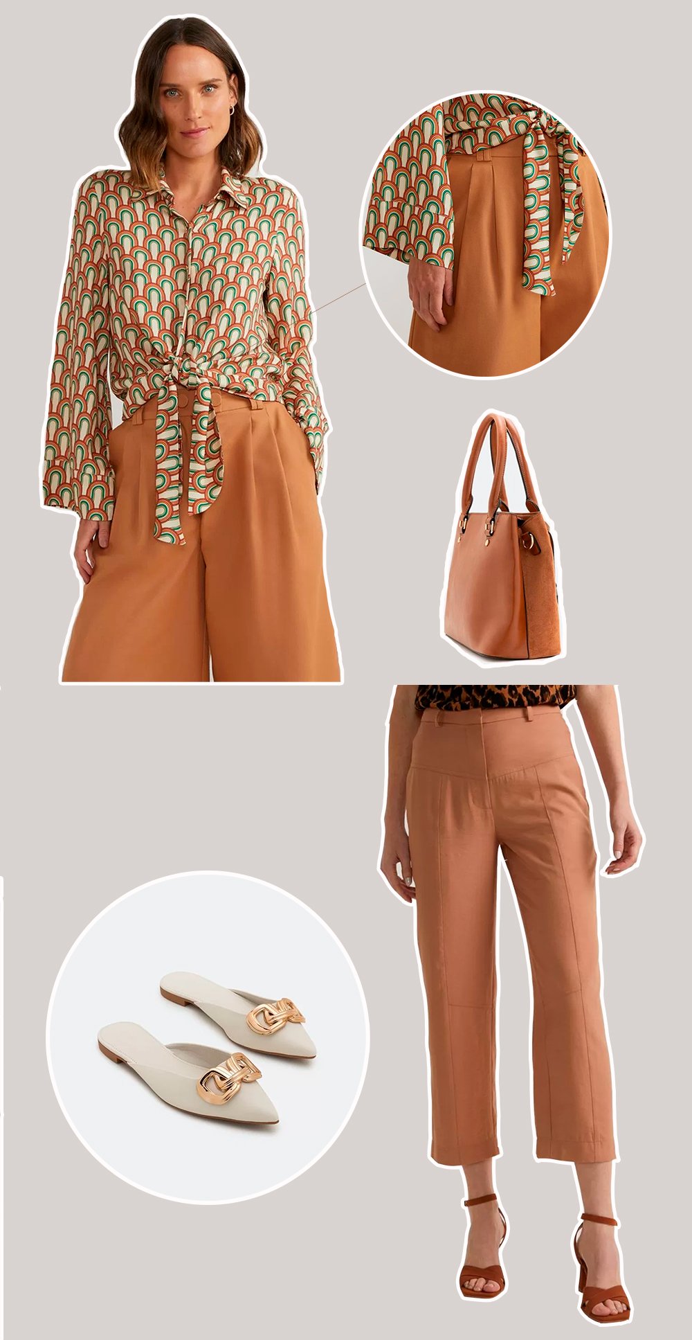 Uma peça que quase todo mundo tem no armário, a camisa se torna menos tradicional e mais cheia de bossa com um nozinho na altura da cintura. Abotoe a peça até a região na qual você pretende dar o laço – geralmente, próximo do cós da calça/saia/short – e depois amarre as pontas soltas em um nó central na frente do corpo. Aqui, você também pode investir em peças que já venham com amarrações, garantindo ainda mais praticidade.