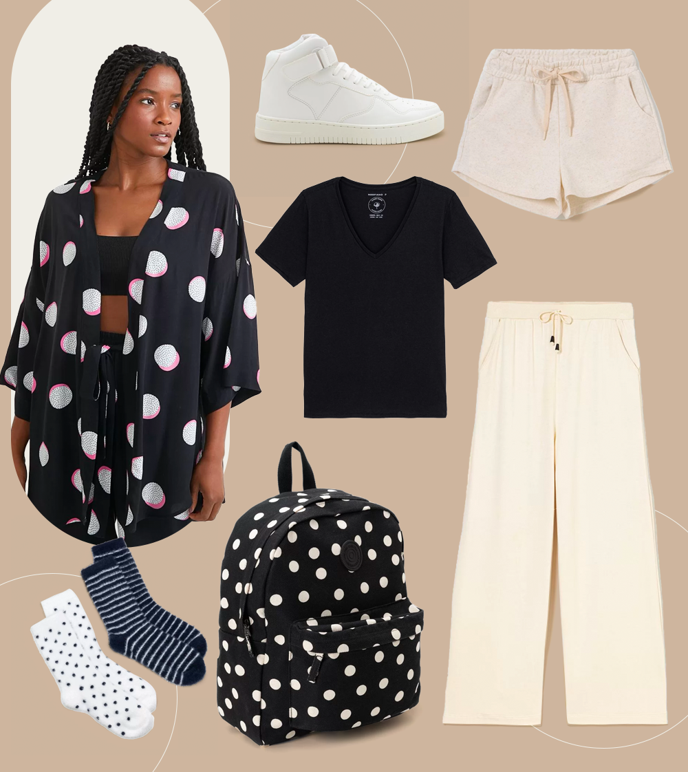 Como próprio nome diz, nesse estilo a prioridade é o conforto. Aqui entram peças amplas, de tecidos leves e cores que passam a sensação de aconchego. Os acessórios também são mais minimalistas e sempre pensados na sua utilidade. É um estilo que gosta muito de terceira peça,como por exemplo kimonos. E aqui é onde a estampa poá pode entrar!