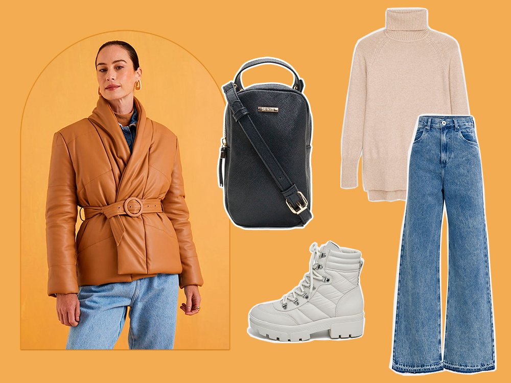 A versatilidade da jaqueta puffer deixa ela ainda mais especial, são diversos formatos, materiais e cores que tornam a peça essencial para os seus looks de inverno. Nesta combinação, a jaqueta aparece com a cor tendência da temporada: marrom.
