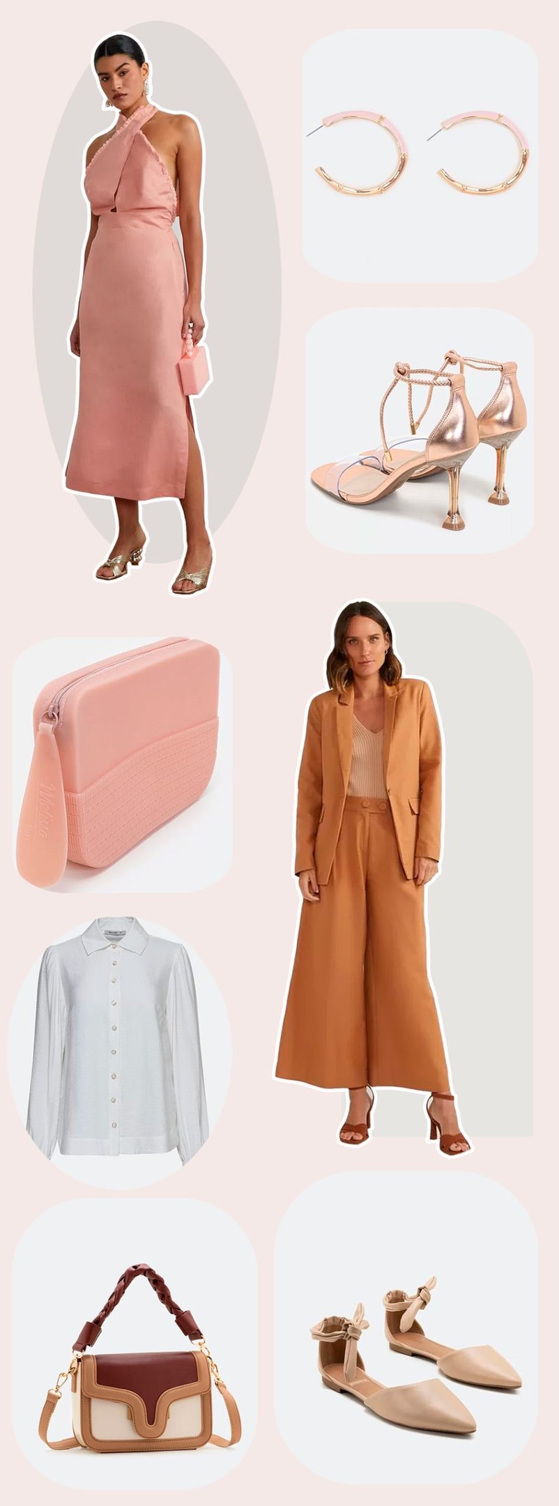Cor que está em alta, o rosa é um ótimo substituto ao clássico pretinho básico e pode ser usado da cabeça aos pés. Os sapatos com saltos geométricos e bolsas com estilo vintage são acessórios perfeitos para trazer dose extra de fashionismo. A melhor parte? Todas essas peças podem render looks para o seu dia a dia, ou seja, versatilidade pura!