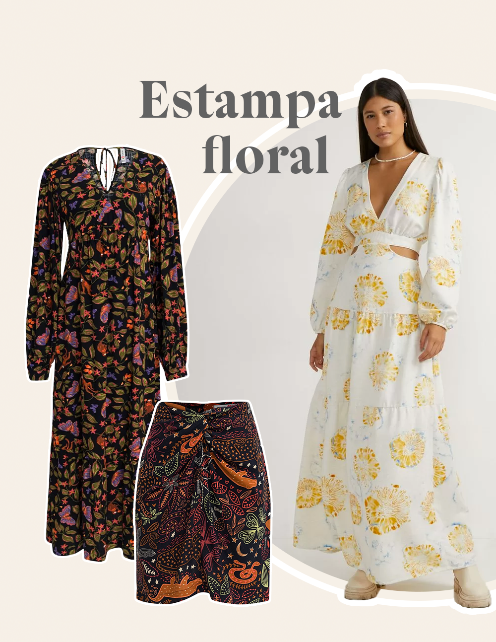 Versátil, charmosa e atemporal, a estampa floral chega para dar um toque romântico nos looks de outono inverno. Para combinar com os tons neutros e frios da temporada, invista na estampa colorida com o fundo escuro. Mas se as cores claras fazem parte da sua análise de coloração pessoal, que tal investir no vestido de manga longa?