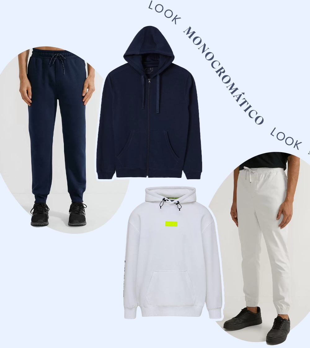 Você ainda pode trazer outras tendências nesse combo: combine calça jogger com casaco de moletom e conquiste um visual repleto de informações de moda.