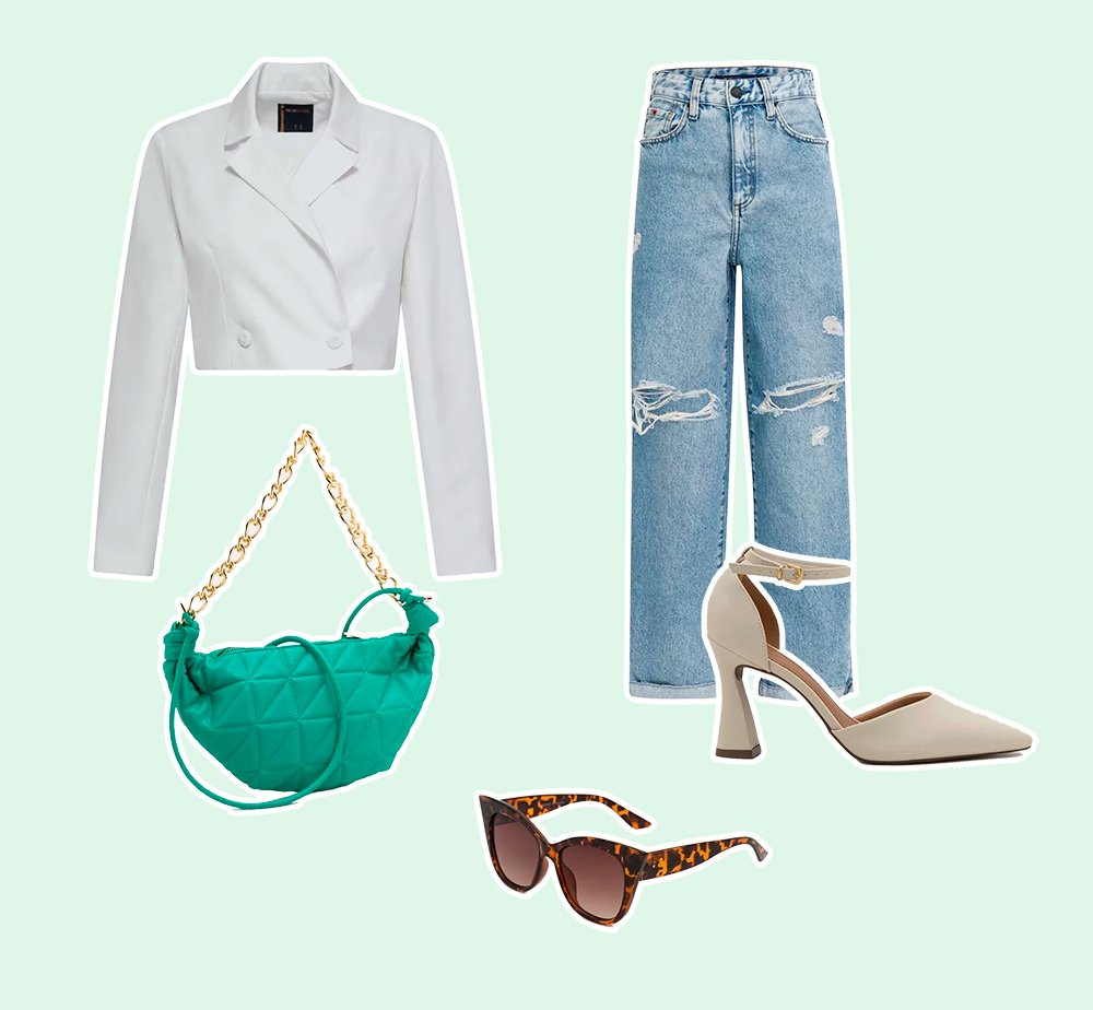 Está em busca de um look mais sofisticado? Incremente a sua base de jeans + blazer cropped com um scarpin elegante e uma bolsa poderosa – os modelos coloridos em matelassê são a trend do momento! Agora, é só investir no tênis e em uma bolsa transversal para o visual se tornar super casual sem perder o estilo.