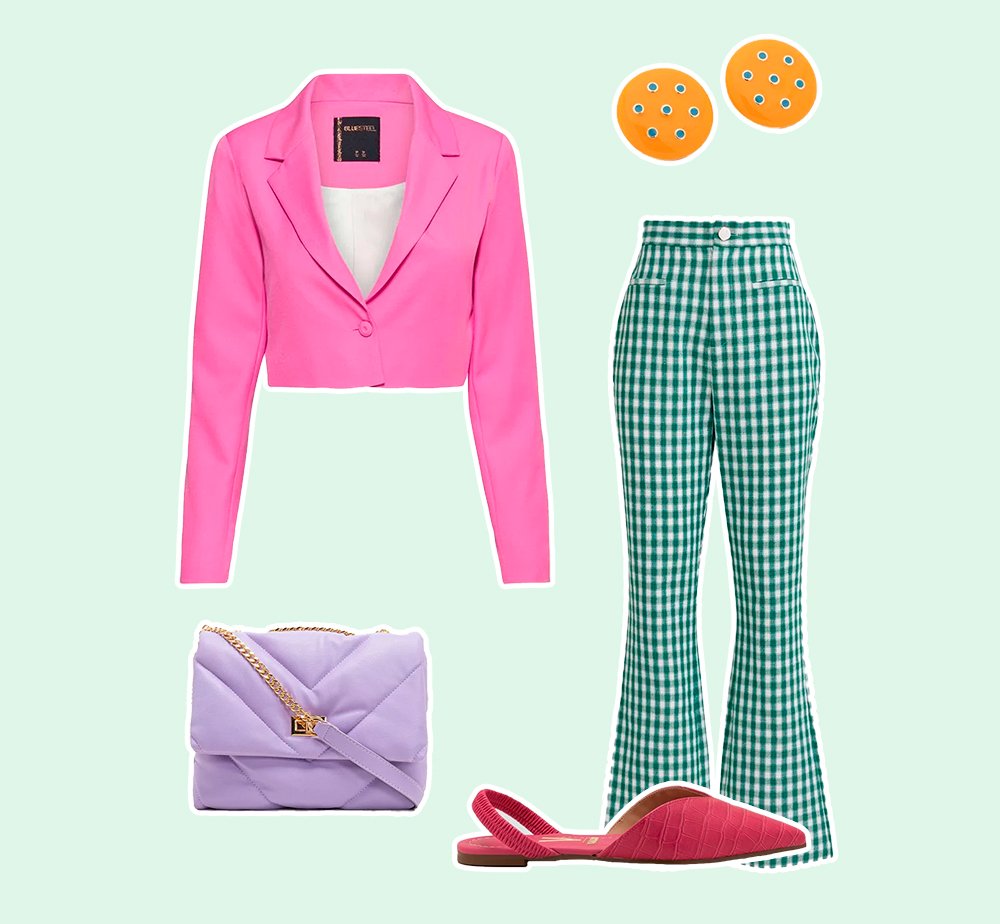 Cor protagonista da temporada, o rosa deixa o blazer cropped ainda mais trendy – uma opção certeira para ir além do clássico. A partir da cor do blazer, você pode apostar em look inteiro pink ou, se ama uma boa ousadia fashion, se jogar em um look bem colorido.