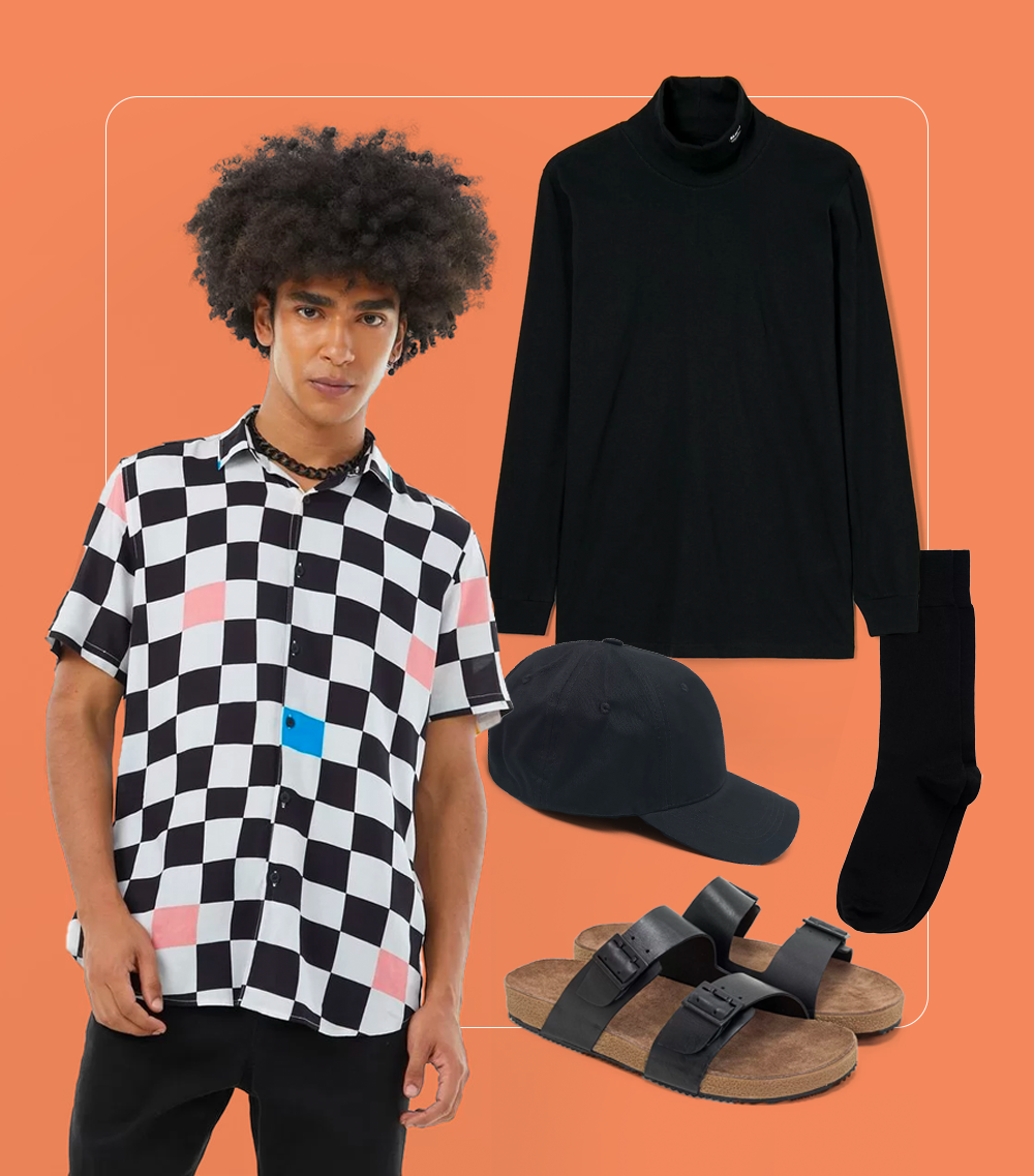 Sabe aquela camisa estampada que você usou bastante no verão? A blusa de gola alta faz uma sobreposição super estilosa com ela! Incremente o look descolado com boné e na combinação ousada de sandália com meia.