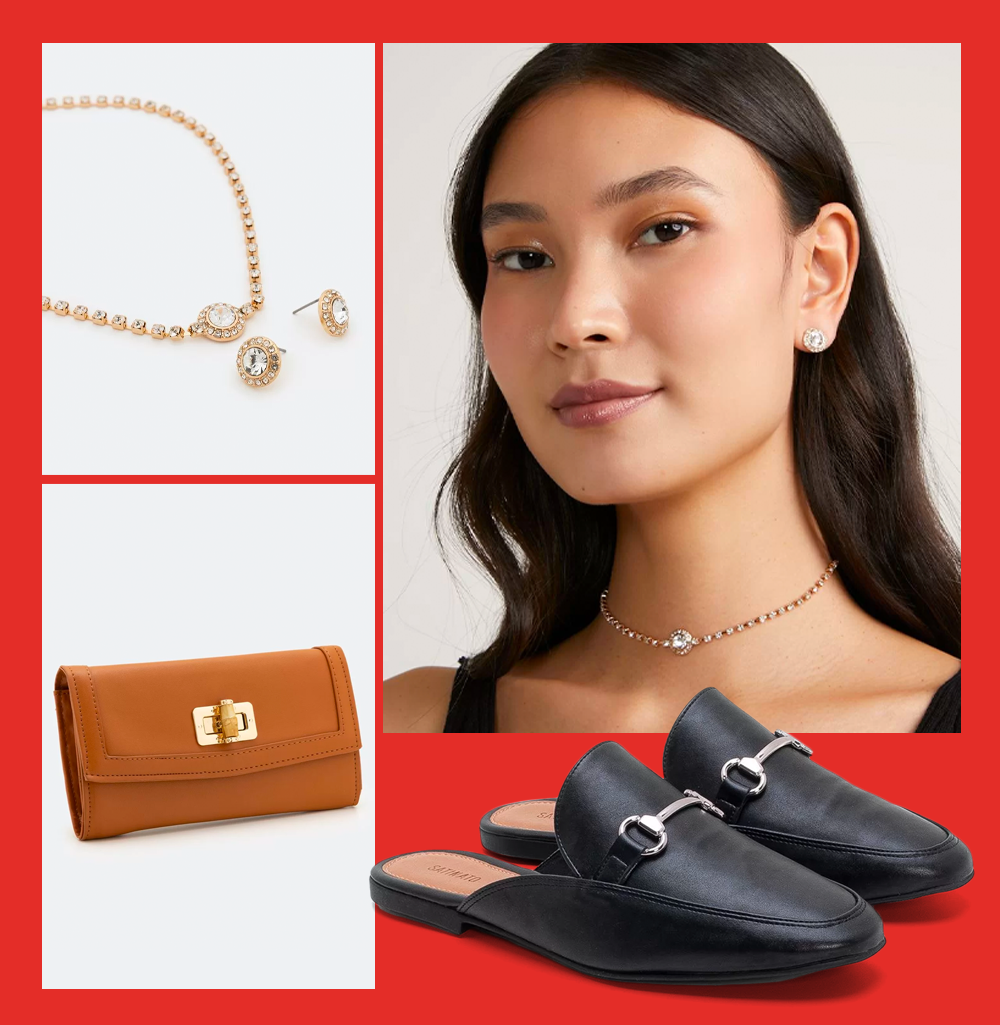 Agora, se você tem o orçamento bem organizado, não se preocupe, pois o presente perfeito também está aqui! Que tal um conjunto de brincos e colar para arrasar no look? Outra opção é apostar em acessórios elegantes, como a carteira e o mule, que é super versátil.
