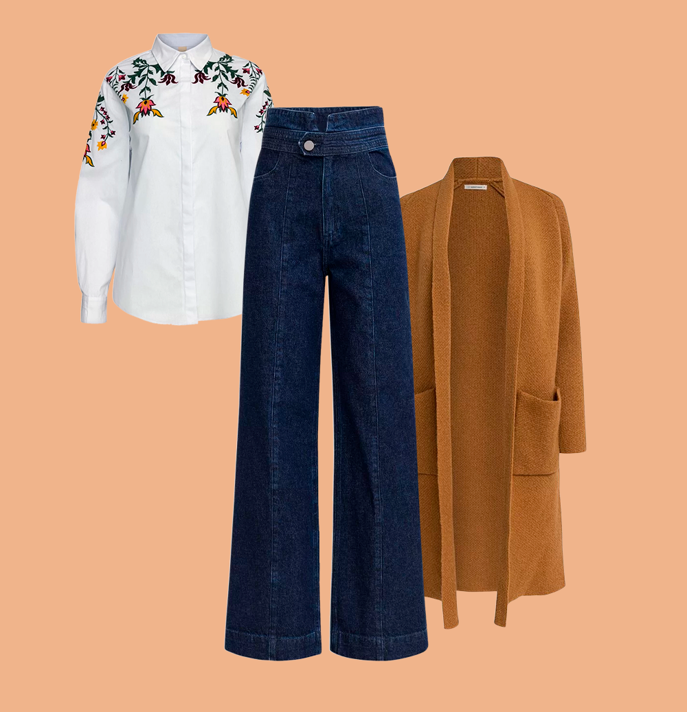 A camisa branca e o jeans são inseparáveis, né? Para complementar essa combinação clássica, aposte no cardigan alongado como terceira peça. Ele é leve, confortável e ainda tem o estilo meio retrô. Além disso, combina tanto com calçados mais despojados, como os tênis, quanto as botas ou scarpins. Seja para ficar chique no trabalho ou descansar no final de semana, o cardigan não tem erro!
