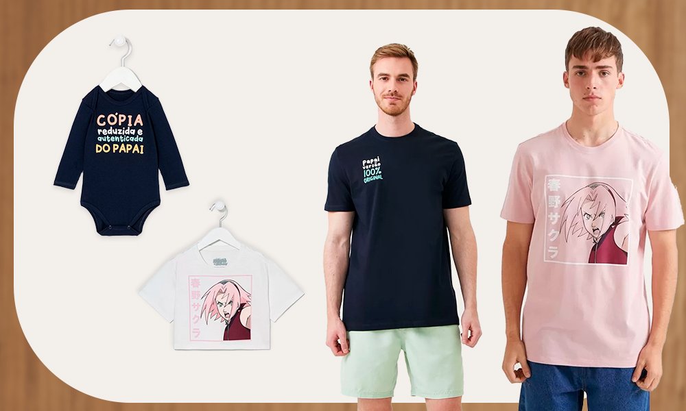Isso rende muita foto fofa para as memórias da família (e para o Instagram também, por que não?) e vai encher o homenageado de orgulho — que vai querer exibir o presente por aí e ainda levar a criançada para passear e mostrar como a criançada está a cara (e o look) do pai. É só escolher seus preferidos a seguir:
