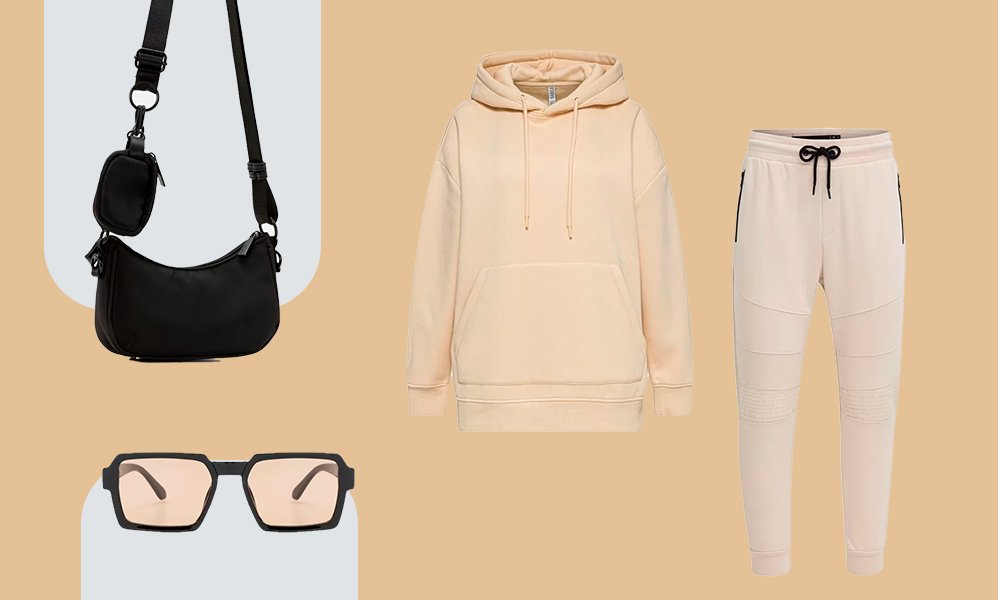O primeiro truque de estilo para deixar o look de moletom mais estiloso é apostar em um visual monocromático, com todas as peças da mesma cor. Depois, é só trazer a bolsa baguete transversal, hit do street style, e um óculos de sol de atitude para um visual cool nos mínimos detalhes.