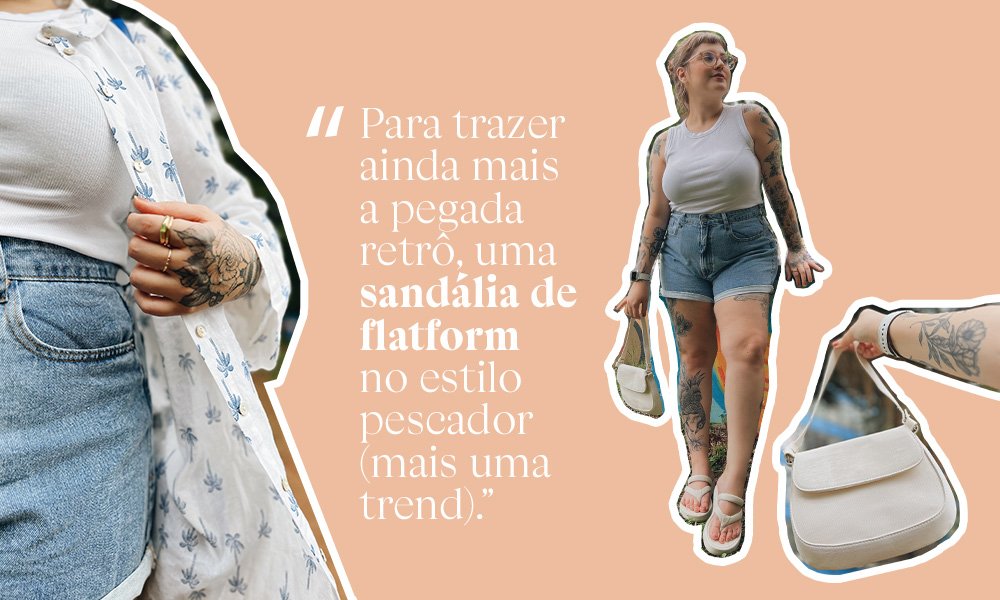 Para o look de base, eu escolhi uma blusa regata branca básica, mas com um corte diferente. Ela pode ser tanto usada em uma ocasião mais formal quanto em uma mais casual. É a versatilidade pulsando! Falando nela, nada mais versátil que o jeans, né? Pensando nele, escolhi esse short jeans no caimento mom. Esse é um tipo de peça que permite diferentes composições, além de ser a cara do verão e super confortável.