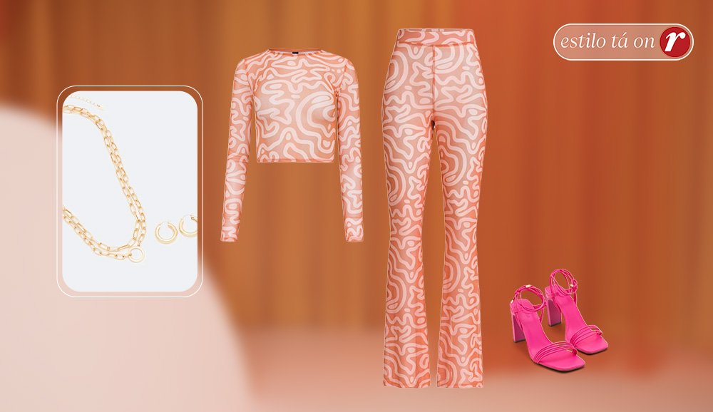 Para fechar as dicas com tudo, a Sthe usou o conjunto com estampas abstratas, que é o hit da temporada. O segredo para valorizar a transparência é usar as peças com biquíni por baixo. Nos pés, para gerar um contraste, ela escolheu a sandália pink. Perfeito, não é mesmo?