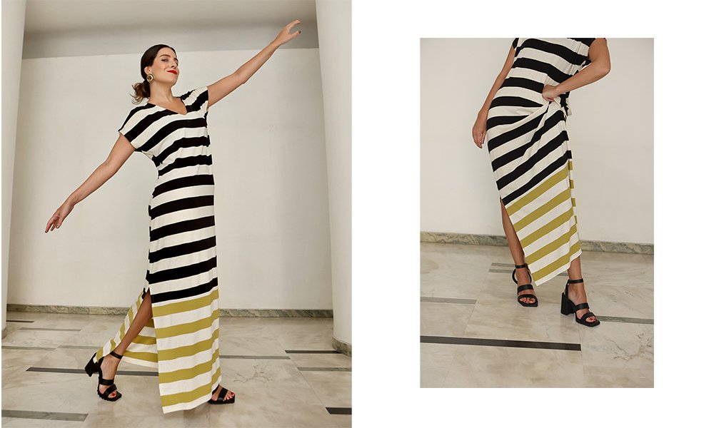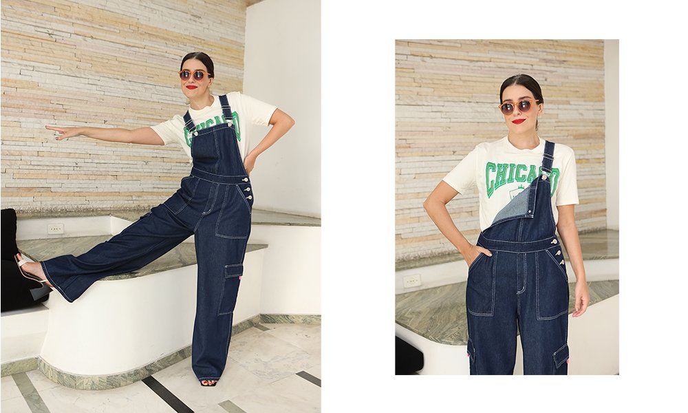 Por aqui, está na jardineira que, para mim, resume bem essa praticidade — e que tem tudo a ver com o momento de mundo por motivos de: quanto menos, melhor! E olha só como dá para torná-la fashion: neste caso, combinei com a camiseta estampada e a sandália com salto geométrico em preto e branco.