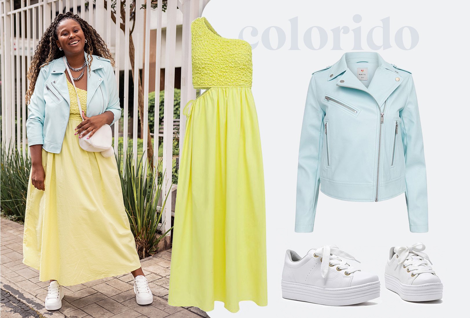 O lado bom de quando uma informação de moda fica em alta, é que ela torna-se ainda mais democrática, ganhando variações incríveis, o que tem já acontecido maravilhosamente com o tecido sintético. Então, não se prenda, esta opção em peças coloridas vai valorizar seu lado criativo e acessível.