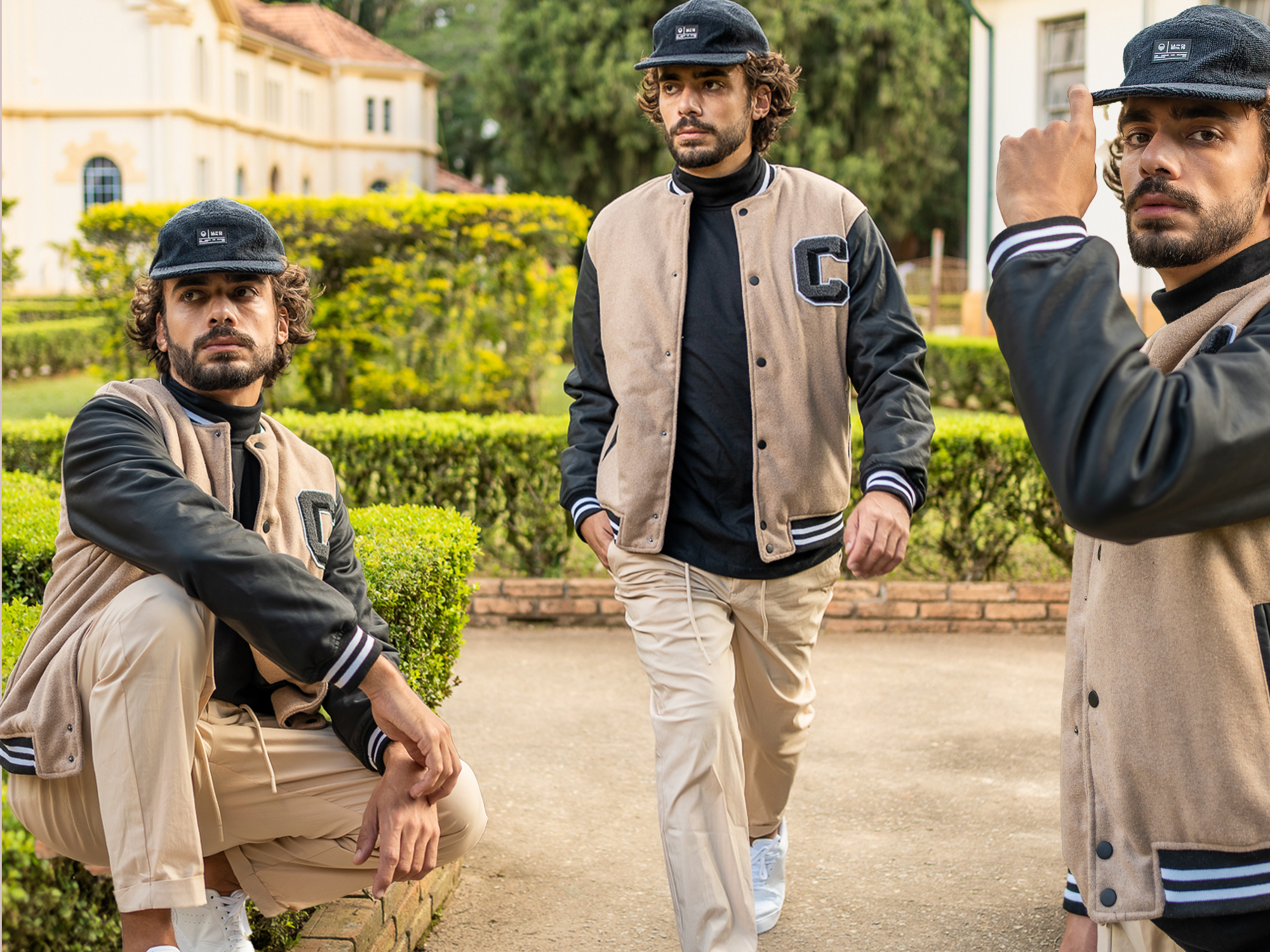As jaquetas na pegada colegial vêm junto com outras mais amplas, que facilitam na hora da sobreposição elaborada com várias camadas ou até mesmo uma mistura de uma camiseta casual de gola alta, calça de alfaiataria, tênis e finalizada com um despojado do boné.