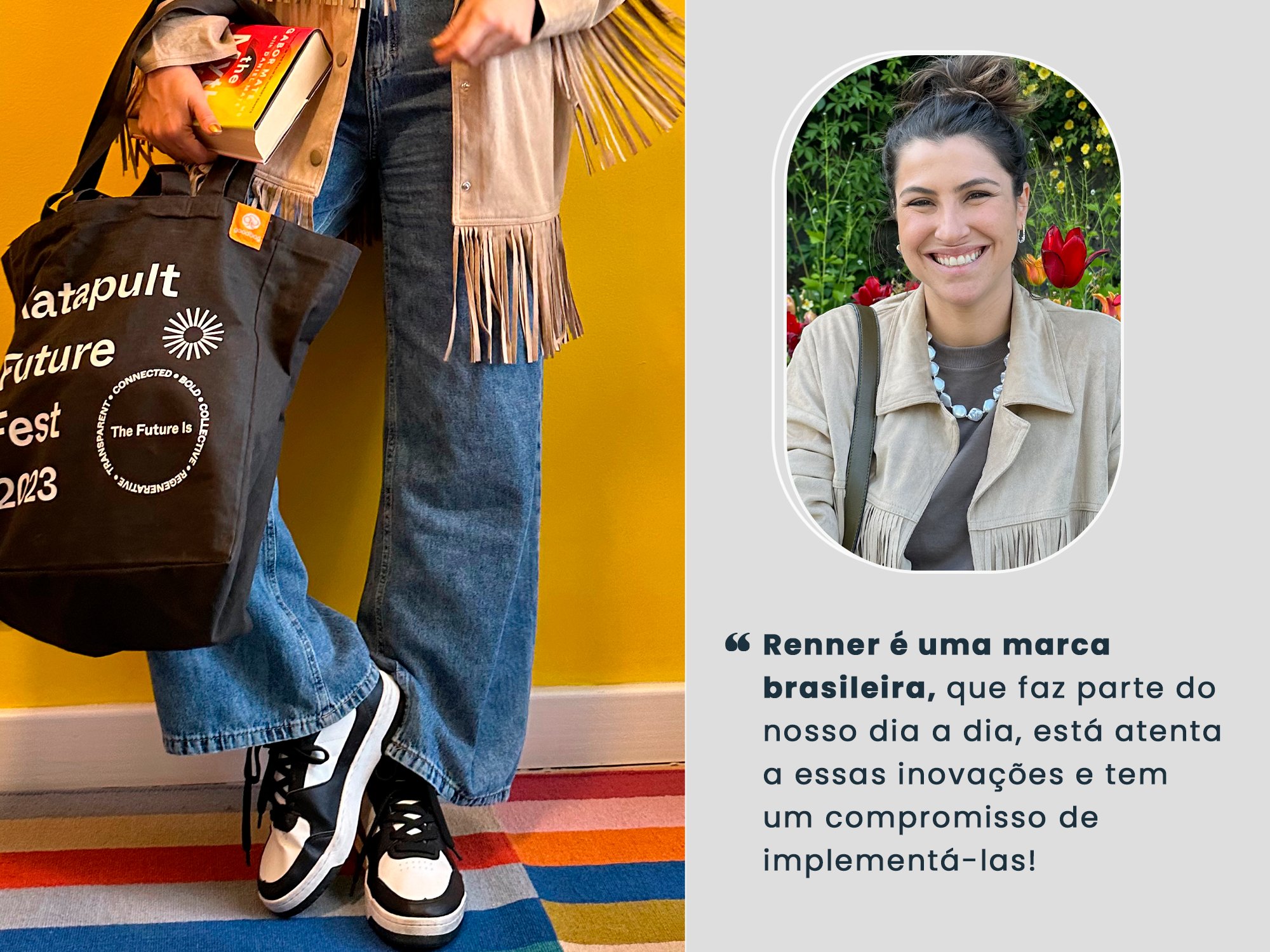 Percebo a conexão com as tendências e insights com o festival em Oslo: Até 2030, a Renner está comprometida em ser um agente de mudança do setor, atuando de forma colaborativa com todos os elos da cadeia produtiva na busca por iniciativas transformadoras. Isso significa desenvolver processos, produtos e serviços cada vez mais sustentáveis do ponto de vista ambiental e social, que proporcionam oportunidades contínuas de inovação em toda a nossa companhia e geração de valor para toda a sociedade.