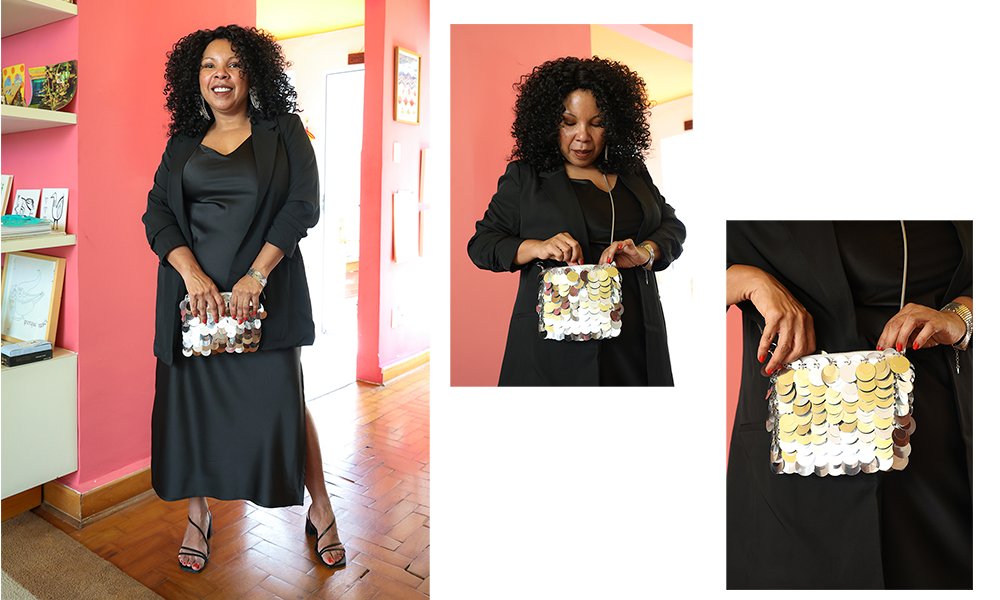 O mesmo vale para as outras peças: jeans, vestidos, tricôs, sapatos, bolsas, acessórios… Roupa para o dia, ou para sair à noite… Eu consigo criar um look completo, que sempre é a minha cara. E sempre de acordo com as tendências. Nesse look, tanto o slip dress quanto o blazer são ótimos para um evento de trabalho ou um jantar. Completa com bijoux (muito brilho) e pronto! Perfeita!