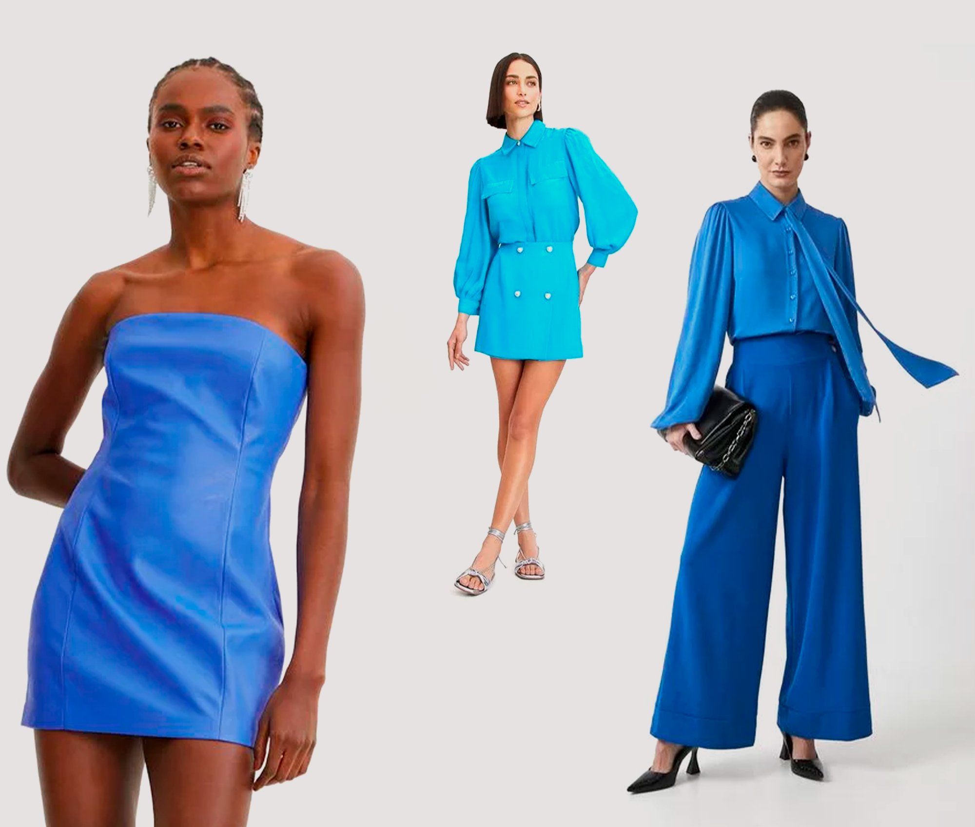 Instituições de pesquisa e tendências apontam o azul como uma das cores do momento para a moda – tudo a ver com a busca por tons vibrantes e alegres para os dias mais quentes. Além de ser uma aposta certeira para visuais incríveis, os tons aquáticos são versáteis e podem trazer combinações criativas!
