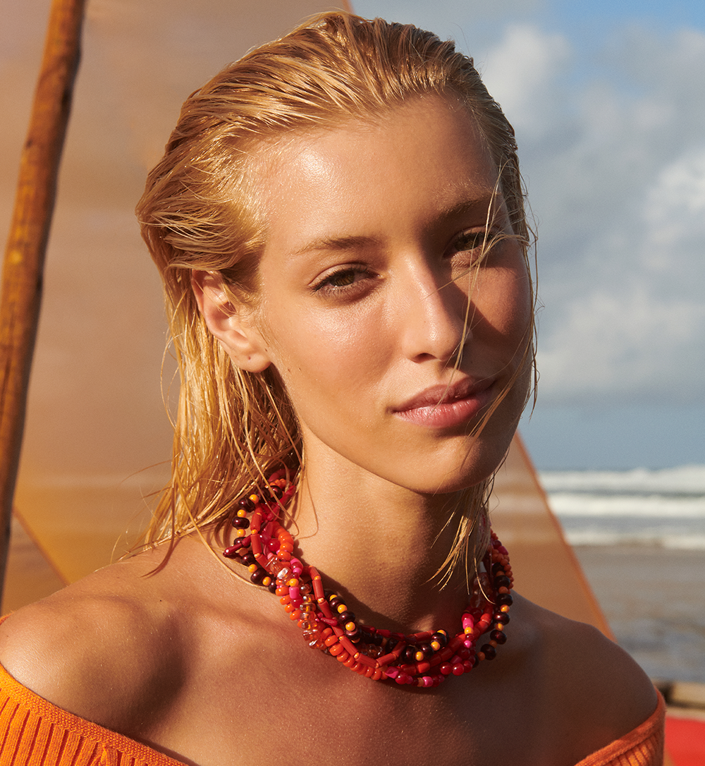 Além desses itens, não podemos esquecer de mencionar a explosão de cores que promete tomar conta das ruas e praias no verão. Maxicolares chiques são os destaques que estão super em alta, oferecendo a oportunidade perfeita para adicionar toques ousados e vibrantes ao seu look.