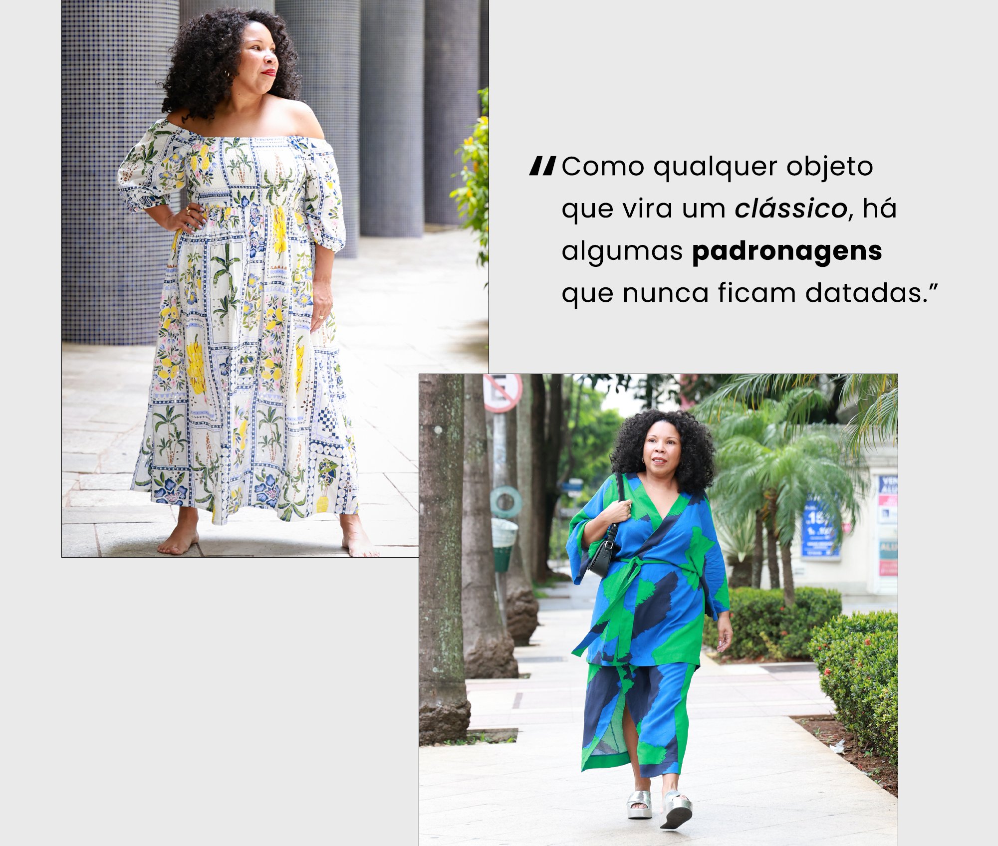 Mas nem sempre foi assim. Se olharmos a história mais recente da moda, a imagem que o mundo tinha de nós era a do turbante de frutas que remetem diretamente ao folclore e à cultura brasileiros. E tem ainda as estampas de chita, outro patrimônio da nossa cultura, que já foram consideradas bregas. Tudo isso numa época em que, por total falta de informação, se acreditava que o que vinha de fora era mais belo e tinha mais valor.