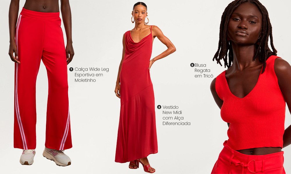 Vai uma dica extra? Tente adaptar o vermelho ao clima. Nos meses mais quentes, os tons vibrantes, como cereja e coral, trazem sensação de vitalidade, especialmente em modelos leves e fluidos.