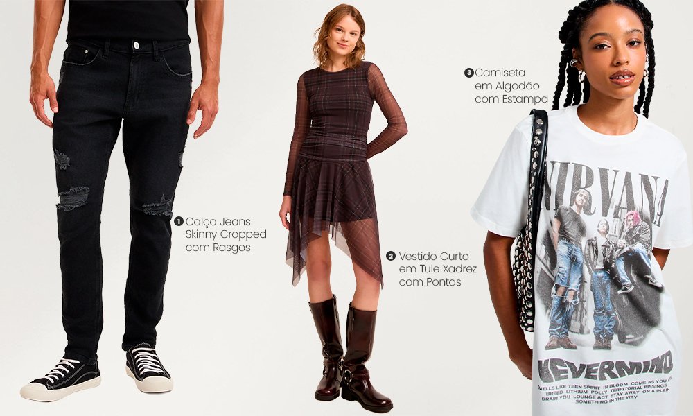 Para criar looks que realmente conversem com o grunge, algumas peças são essenciais: