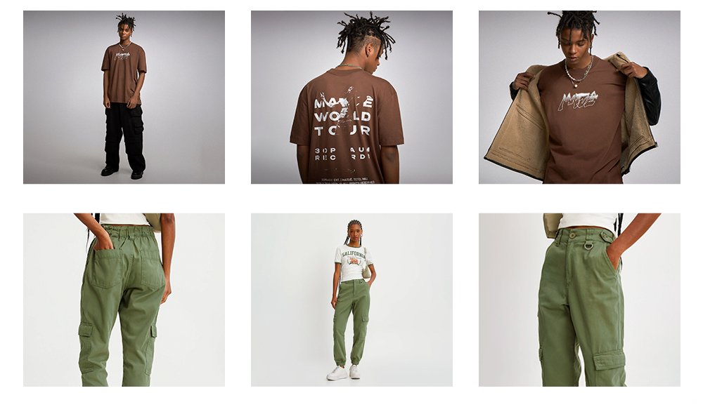 Por exemplo, se você usar uma camiseta mais larguinha, vale apostar em uma bermuda jeans e acessórios mais leves para a combinação. Ou então, se a ideia é usar uma calça jogger, combine com um cropped canelado com listras e um boné bordado.