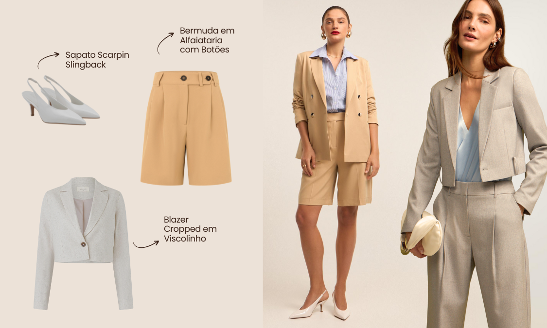 É uma versão reinventada dos modelos clássicos, com cortes assimétricos, tecidos fluidos e uma pitada de ousadia. O novo office look é perfeito para a mulher urbana, que está sempre preocupada em equilibrar sua rotina entre o trabalho e os momentos de lazer com os amigos, mas, claro, sem perder o estilo.