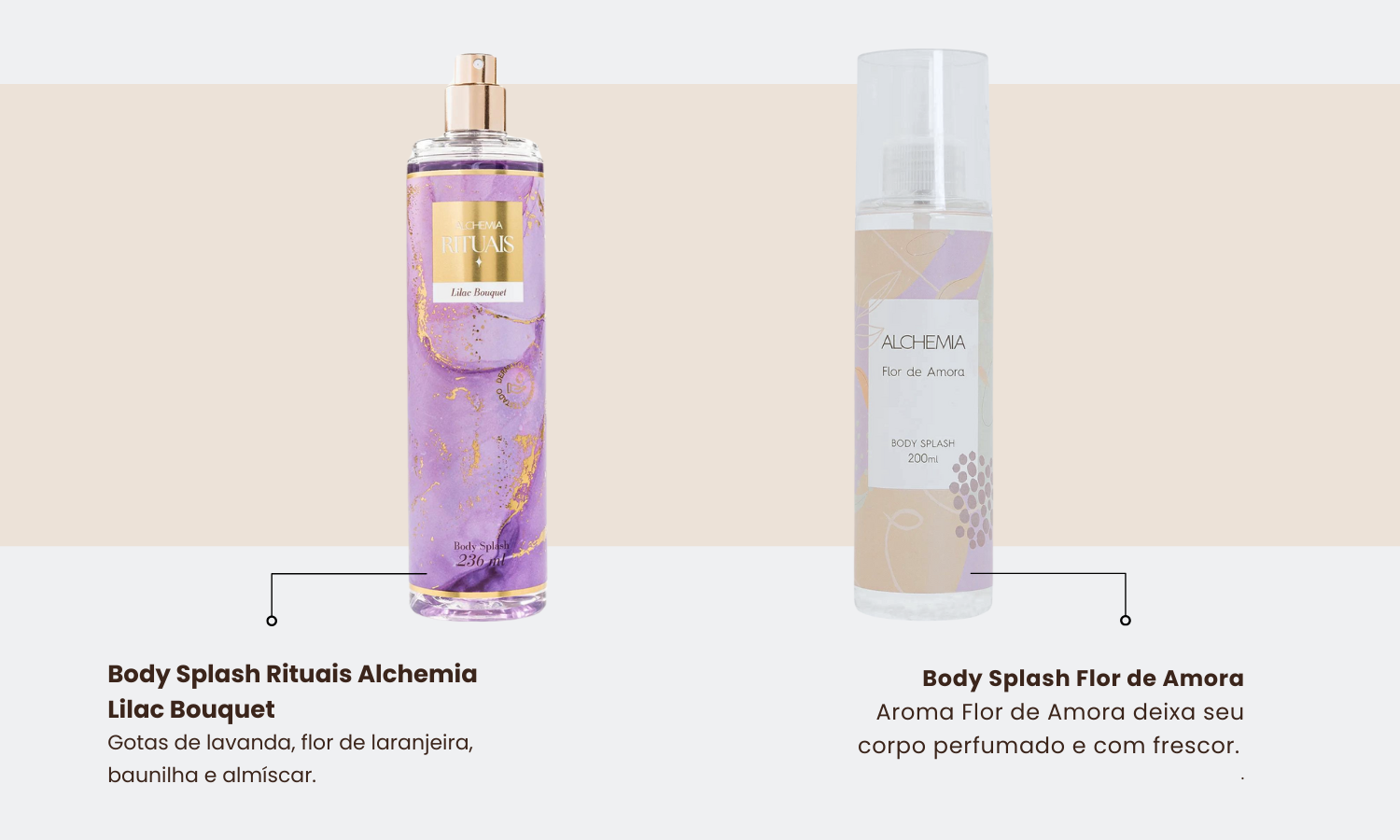 O melhor do body splash é que ele tem fragrâncias para todos os gostos. Todos mesmo! Desde o floral até as fragrâncias mais masculinas, há uma infinidade de opções para você encontrar a que mais combina com sua personalidade e estilo. A Alchemia – marca de perfumaria e beleza da Renner – tem algumas opções.