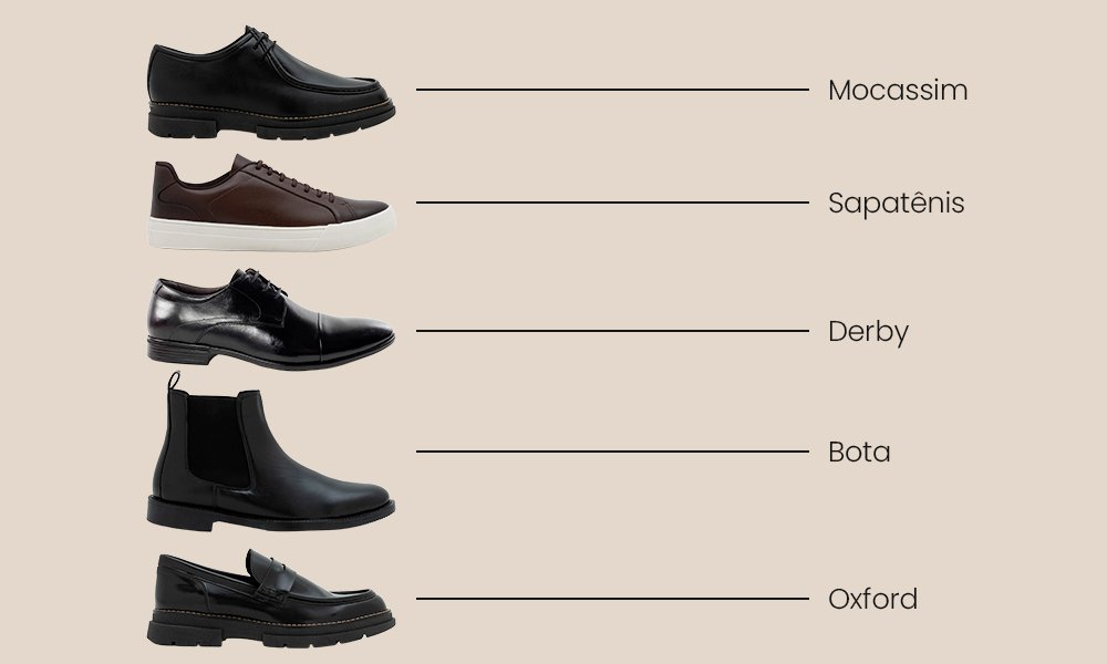 - Mocassim: versátil e charmoso, é ótimo para o dia a dia;